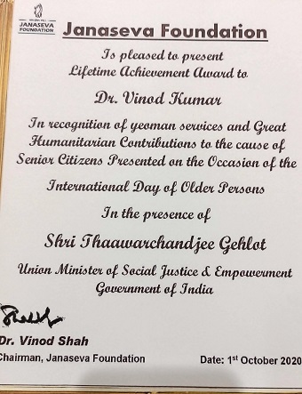 LIFETIME ACHIEVEMENT VAYOSHRESTHA SAMMAN AWARD FROM GOVT. of INDIA, 2011 (1)-min